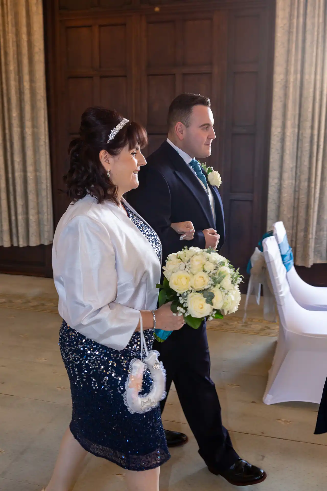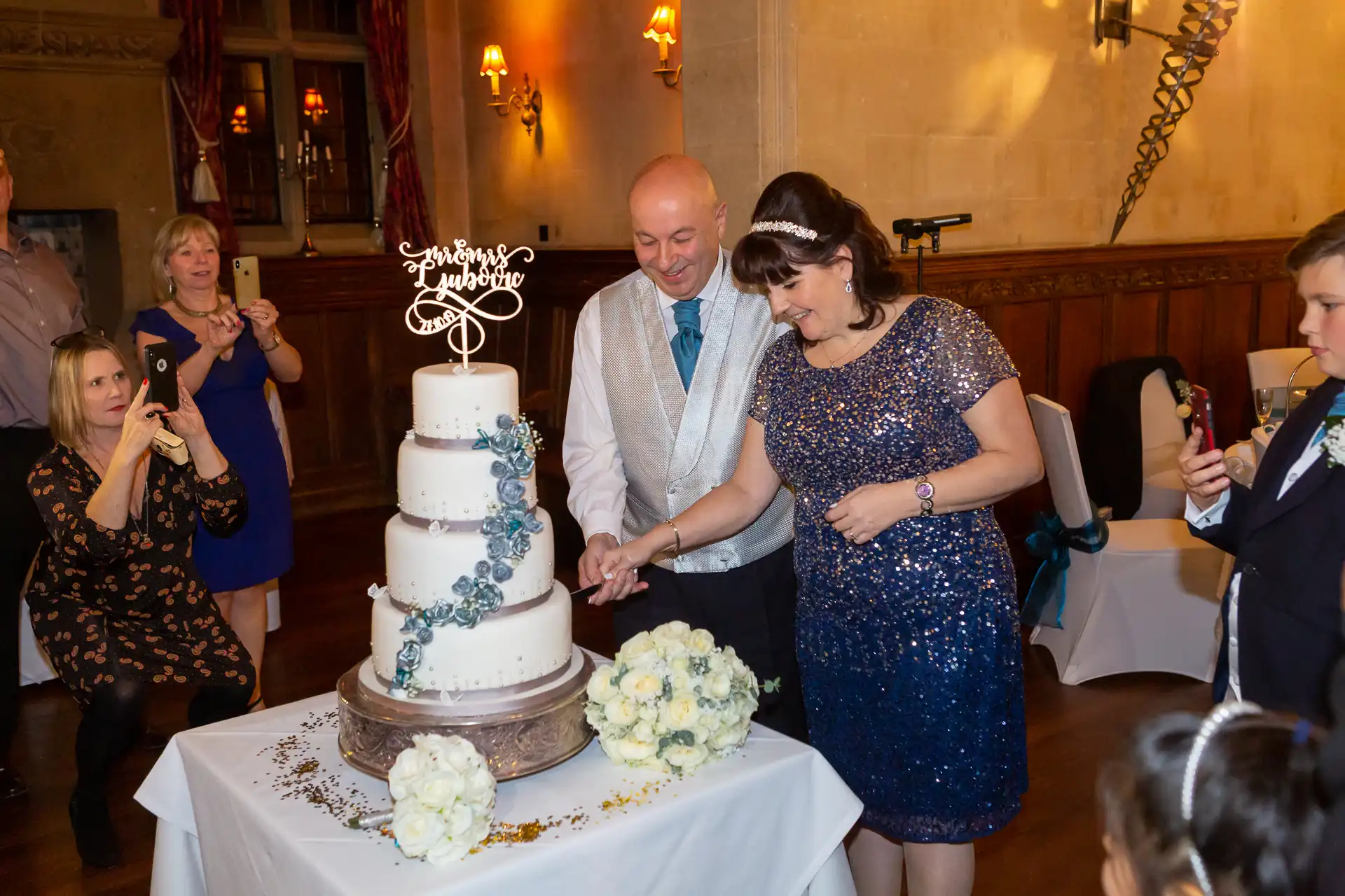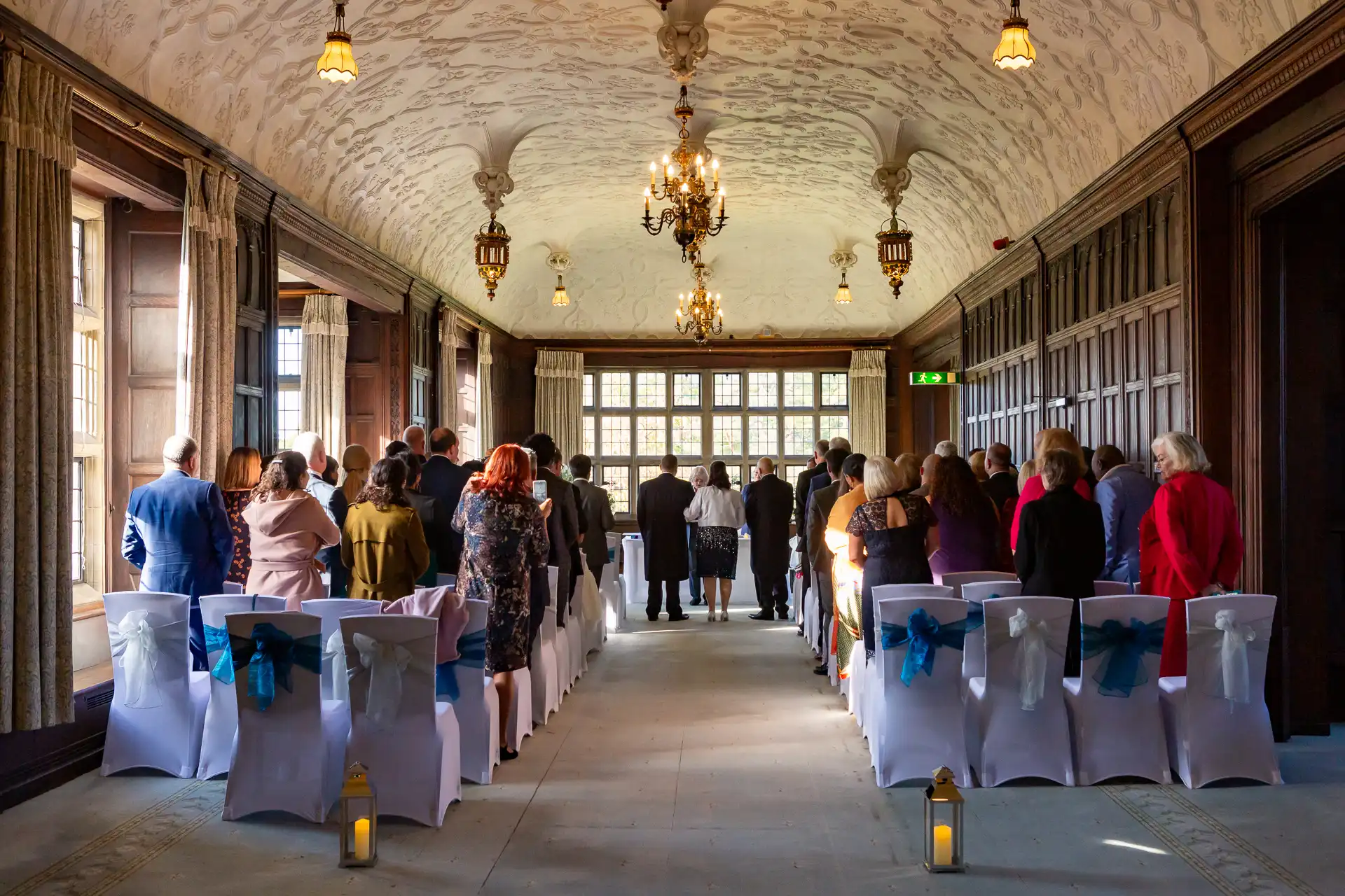 Nigel and Anna tied the knot at the magnificent Fanhams Hall in Ware, Hertfordshire—a venue renowned for its Jacobean architecture, landscaped gardens, and timeless charm. Their ceremony took place in the Long Gallery, a spacious and light-filled room that provided a stunning backdrop for their vows.